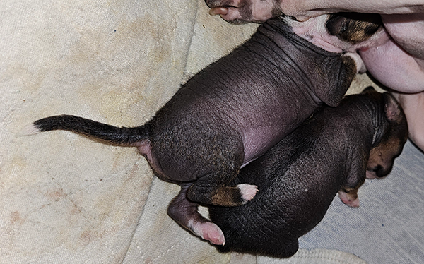 We have puppies available for adoption. These are hybrid hairless puppies from a cross between an American Hairless Terrier and a Hairless Chinese crested.